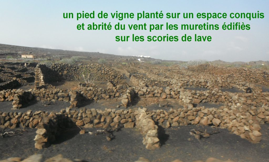 2014-03-16 16h40 champs de Malpais 1 pied de vigne par abri au vent Nord de Lanzarote