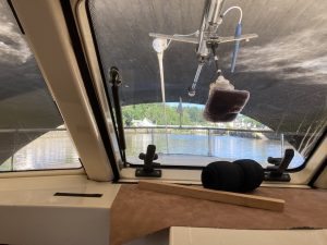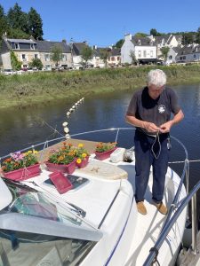 Nous nous amarrons de nouveau à couple de Marie Galante au ponton de Saint Caradec, à la sortie de la ville. Nous irons à l’écluse demain avec Marie Galante.
